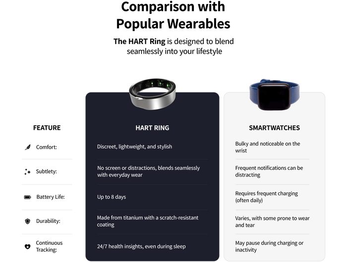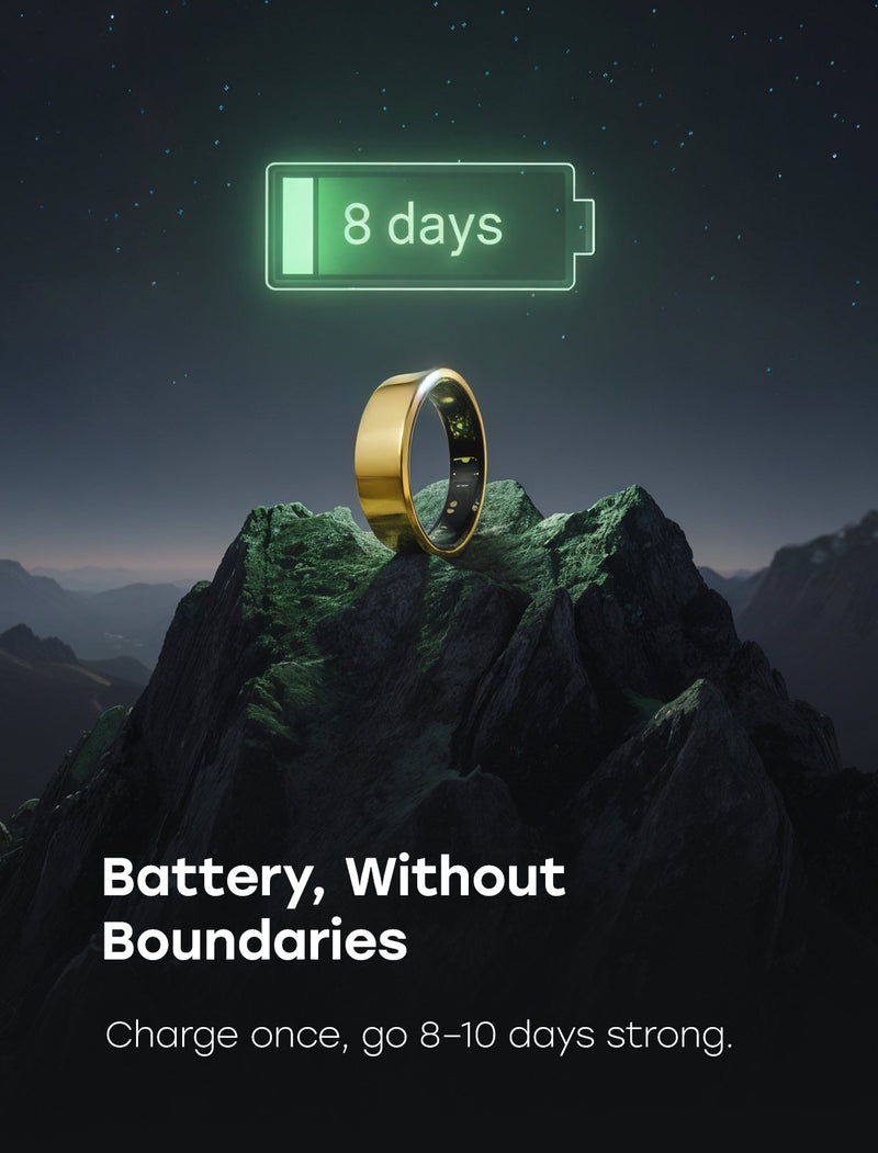 The HART Ring has a super long-lasting battery, giving you up to 8 days of use on just one charge. So, you can wear it and track your health without worrying about recharging too often!